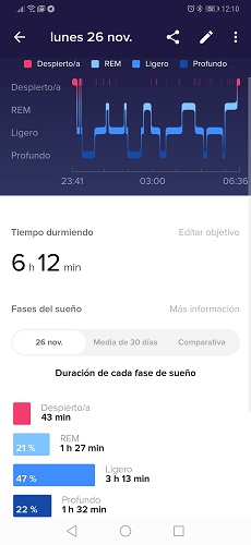 En cuanto a las notificaciones, aunque es algo que ya teníamos en anteriores dispositivos de Fitbit, si, como yo, tenéis como smartphone principal un Huawei seguro que te daba más de un quebradero de cabeza por su incompatibilidad. Hemos probado la Fitbit Charge 3 con un Huawei Mate 20 Pro y son compatibles al 100%. Para vincularlos por primera vez nos llevó algo de tiempo (en torno a 25 minutos el emparejamiento y otros 25 minutos la configuración). Durante este tiempo no tienes que hacer nada, solo armarte de paciencia, cuidar que ninguno de los dos dispositivos entren en stand-by y tener la confianza de que lleva tiempo, pero finalmente se vinculan sin problema. De todos modos, si tienes cualquier problemilla para vincular tu Fitbit Charge 3 con tu móvil Huawei con EMUI 9.0, déjanoslo en los comentarios y trataremos de ayudarte.