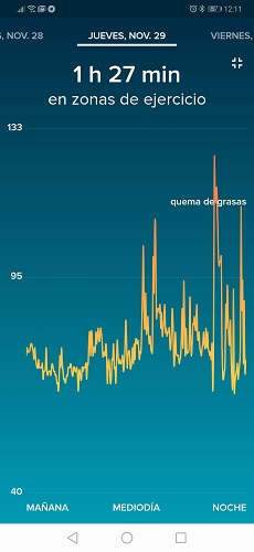 Pero quizás lo que más interesante me ha resultado a mí es la monitorización 24/7 del ritmo cardíaco. Aunque no he podido contrastar datos con otro monitor, parece bastante eficaz en esta medición, habiendo registrado picos de momentos de estrés o sobresaltos. Es muy práctico para mirar durante el ejercicio cómo vamos de pulsaciones, además de poder repasar al final del día cuál ha sido nuestra media en reposo y poder detectar así posible anomalías.