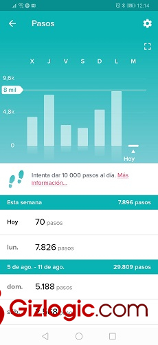 La calidad de visualización de la pantalla es perfecta, tanto en interiores como en interiores. En ella podemos ver un resumen rápido sobre los aspectos más destacados (hora, pasos, distancias, ritmo cardíaco, horas de sueño…) por lo que si no queremos, no tendremos que abrir la app para nada, aunque debido a la calidad de esta te lo recomiendo fervientemente.