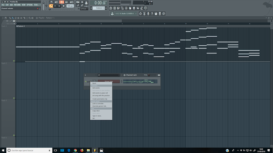- En Channel Rack, sobre el knob derecho (volumen) clicka botón derecho -> Edit events piano roll.