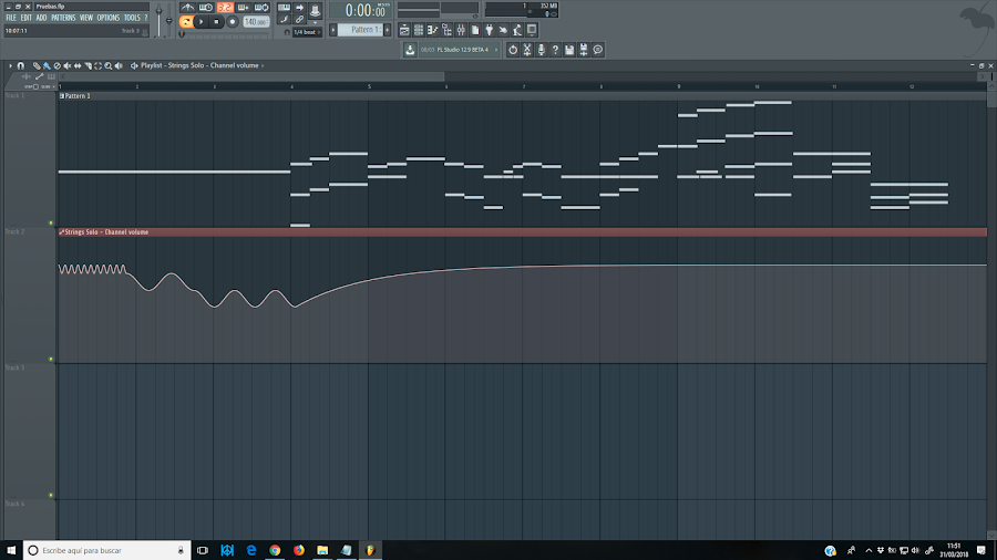 - Finalmente, en la Playlist se muestra el canal de sonido con la automatización de volumen por detrás, como una sombra.