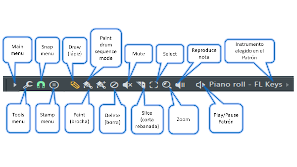 En el Piano Roll usaremos la Tool bar como herramienta principal.
