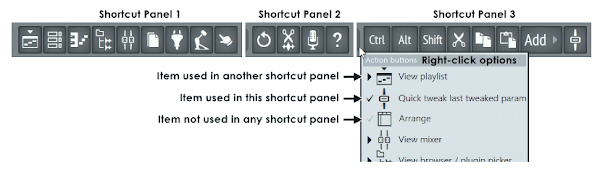 Yo prefiero usar las teclas de función "F" para acceder a cada una de las herramientas del Shortcut Panel 1, que te voy indicando a continuación en cada una de los títulos de los párrafos.