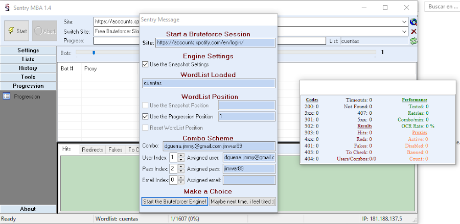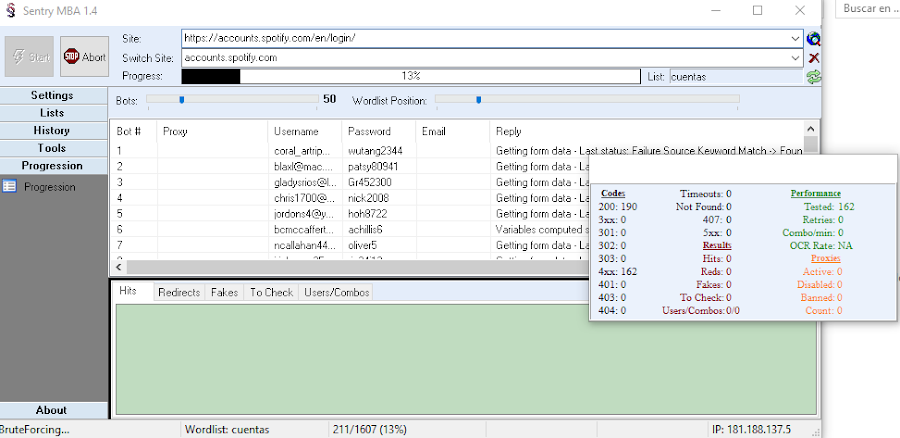 Conseguimos los combo para spotify cuenta auto-pagable ahora nos tocara verificar que cuentas estan disponible , usaremos otro programa para que lo chequee (Chekers)