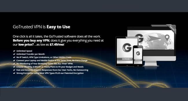 Como reza cada GoTrusted VPN VPN review que existe en la red, GoTrusted VPN es una red privada virtual que encripta la información del usuario y la enrutar en túnel seguro para mantenerla fuera del alcance de piratas tecnológicos. Entre las muchas cosas para que sirve GoTrusted VPN se encuentran las opciones: