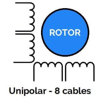Hemos adquirido un motor paso a paso, el manual está en otro idioma y desconocemos si es unipolar o bipolar. En un simple vistazo:Si tiene 8 cables, probablemente sea unipolar y usará 4 por cada bobina.