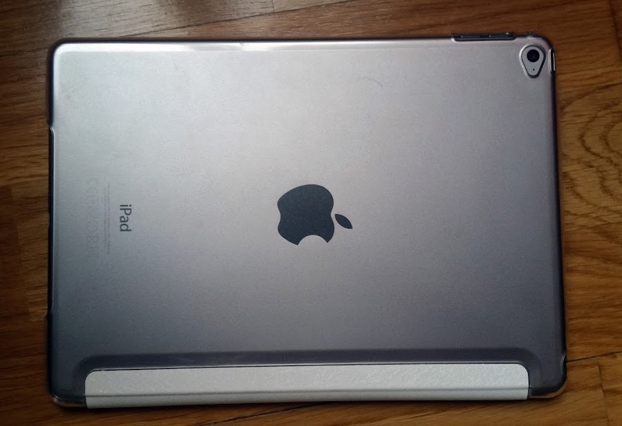 Tiene funda transparente por la parte de atrás, por lo que está bien protegido y por delante es carcasa imantada que desbloquea el iPad sólo con abrirla y también se hace un triángulo para sostener la tablet de pie y poder ver cosas sin tener que sostenerla.