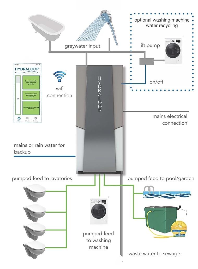 Hydraloop afirma este dispositivo nos permitirá ahorrar unos 75.000 litros de agua al año, en una familia compuestas por 4 personas las cuales usen el inodoro regularmente y que pongan una lavadora al día, esto supondría un ahorro del 45%. También contaremos con una aplicación que nos permitirá realizar ciertos ajustes y tener un informe de cuánta agua estamos ahorrando.