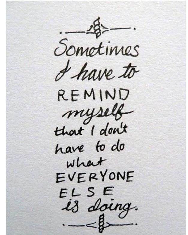 Por eso, de vez en cuando tengo que repetirme que tengo que hacer lo que creo que tengo que hacer, sin importarme qué o cómo lo hacen los demás, siguiendo mi instinto. Y me dirás… pero si eso es de cajón! Si? Pues seguir la corriente de la mayoría suele ser lo más fácil, nos encontramos sin querer haciendo lo que se espera de nosotros o haciendo lo que hacen todos, yendo a los mismos sitios, viendo las mismas pelis, siguiendo las mismas series, leyendo la novela del momento.