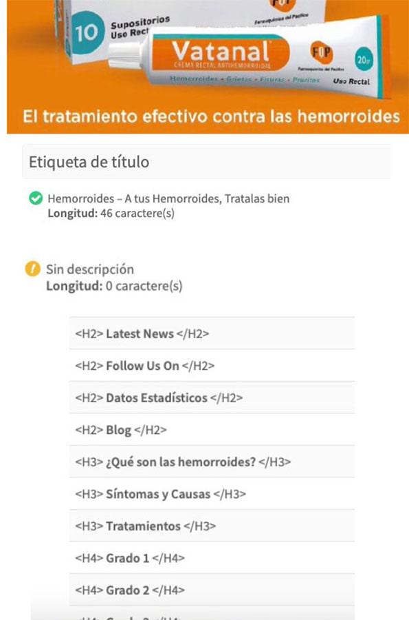 Analicemos este caso de estudio de una web chilena de una crema para hemorroides ( Vatanal . cl ) , que muchos la sufren.