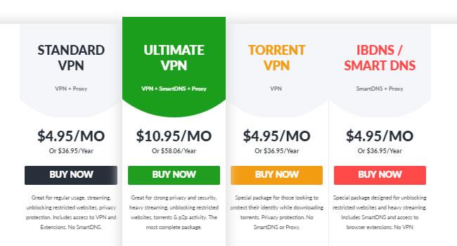 IBDNS/SMART DNS: se paga de manera anual un total de 36,95 dólares o 4,95 dólares facturados al mes. En este caso, el paquete se diseño con fin de desbloquear los sitios web restringidos y streaming pesado. Cabe acotar que se dispone de SmartDNS además de acceso a las extensiones de los navegadores.