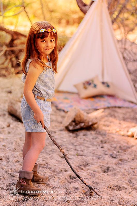 A todo niño le encanta disfrazarse y el atrezzo empleado puede ser un sombrero, gafas, pelucas, tacones entre muchos otros. A Nayara le gusta la naturaleza y hacer cabañas. Con ganas e ilusión, se lo pasó en grande, tanto montando la tienda india como posando para las fotos.