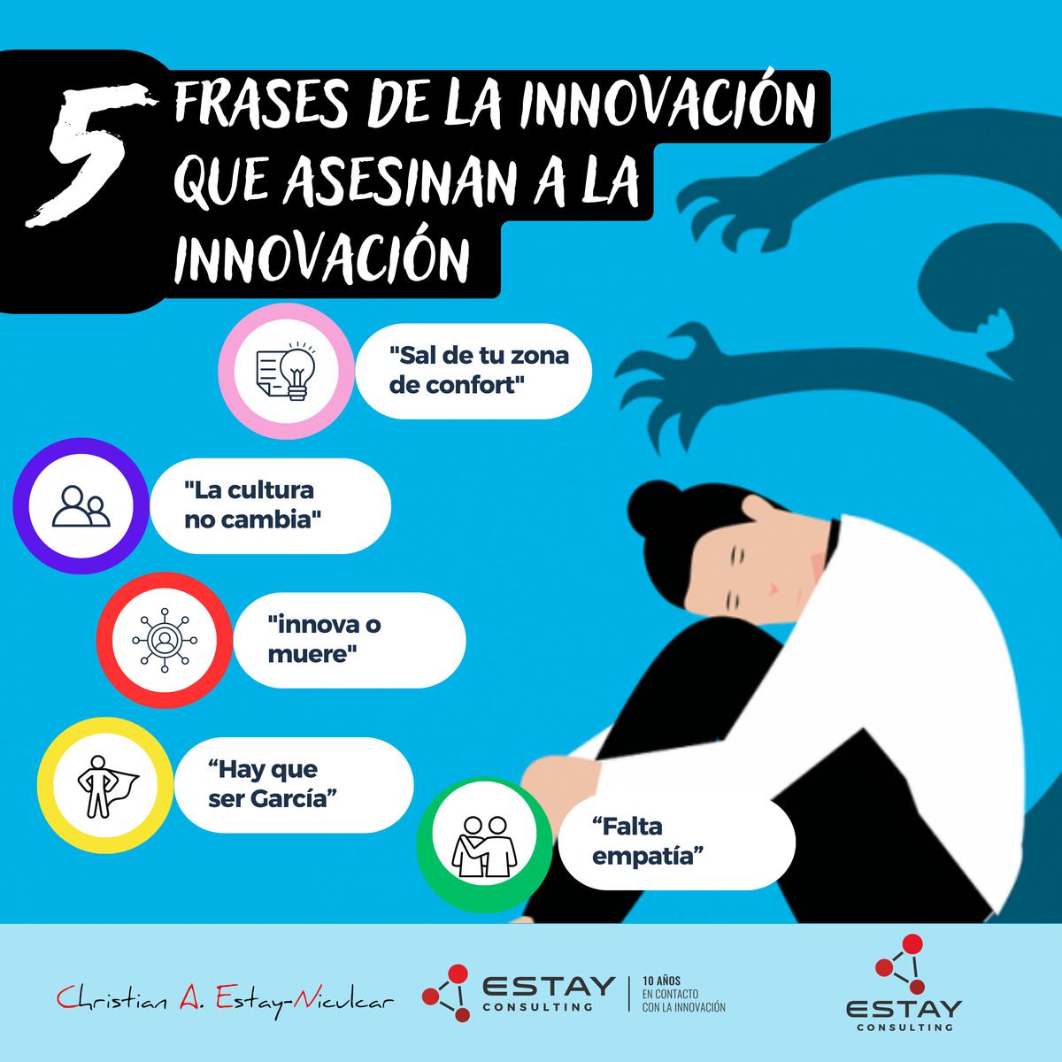 La siguiente infografía comparte algunas de estas frases consideradas hoy en día asesinas de la innovación. Otras que también se escuchan son: hay que ser como en el cuento a García (en alusión a la historia Una Carta a García), o Tus habilidades blandas no están suficientemente maduras.