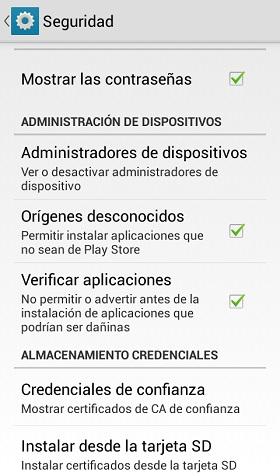 Lo primero que debemos hacer en nuestro móvil para instalar cualquier aplicación que no provenga de Play Store (de Google), es marcar la casilla “Orígenes desconocidos”. Para ello entramos a “Ajustes”, pulsamos sobre “Seguridad” y marcamos la la casilla “Orígenes desconocidos”. Esquematizado sería: “Ajustes” –> “Seguridad” –> “Orígenes desconocidos”.