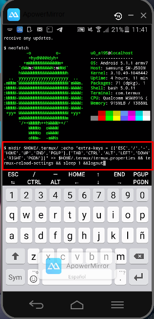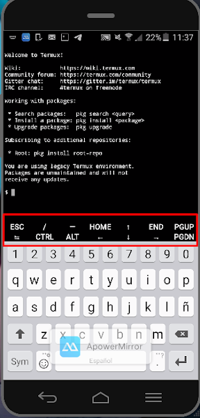 Al usar el siguiente comando, podrá acceder a todas las teclas de flecha en el termux touch.