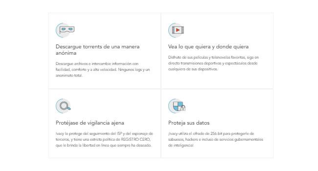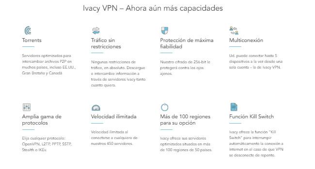 A adquirir un plan de Ivacy full el usuario accede automáticamente a todas las características ilimitadas de la red más fiable de España y el mundo. Además con la ventaja de conexiones múltiples puede usar la versión Ivacy portable para protegerse incluso usando sus programa favoritos en Smartphones. Las principales características son: