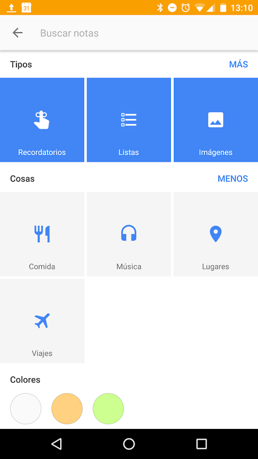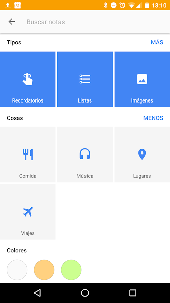 Al buscar en tus notas encontrarás que además de clasificarse por colores, tipo, personas y etiquetas aparece una sección nueva Cosas. A partir de ahora tus notas se clasifican por sí solas según su temática aunque no les pongas etiquetas. Entre otras encontramos Música, Lugares, Viajes y Comida.