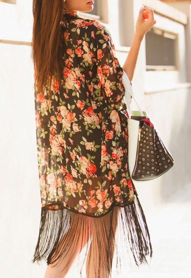 ¡Empieza el fin de semana chic@s! Hoy os dejo un look con varias cositas nuevas en mi armario. Por un lado un precioso KIMONO FLORAL con flecos, de GOTA DE AGUA. Lo incorporé en mi armario ya hace un par de meses y la verdad es que ya tenía muchísimas ganas de estrenarlo. A mi personalmente me parece precioso, tanto el estampado como el diseño. Si os gusta este tipo de prenda estoy segura de que os va a encantar! :)