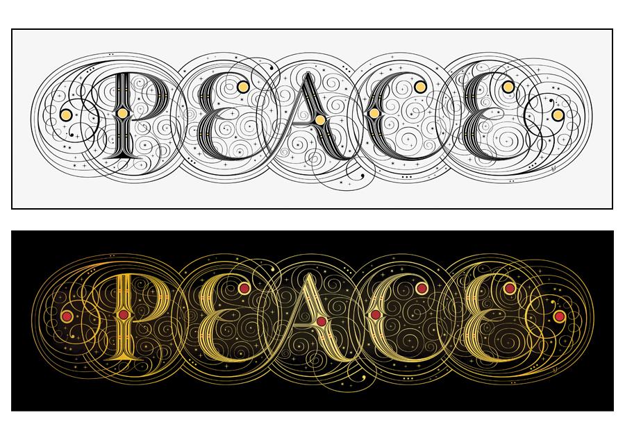 Te dejo con alguno de sus trabajos, pero en su página web (de donde he sacado todas estas ilustraciones) encontrarás muchos más, entre los que destacan los que están hechos con fondo negro y letras doradas.