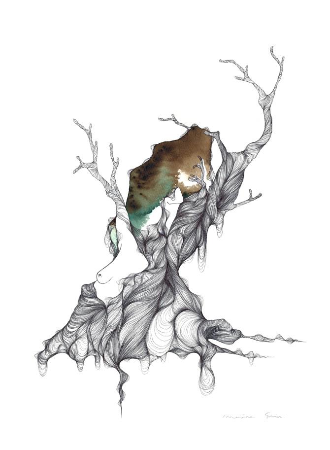 Marina Guiu es una jovencísima ilustradora de Lleida, con un imaginario lleno de color. Su trabajo a base de acuarelas y tintas es una mezcla de representaciones oníricas y abstractas con elementos naturales y delicados. Fantasía y realidad mezcladas como si se tratara de un sueño de verano.