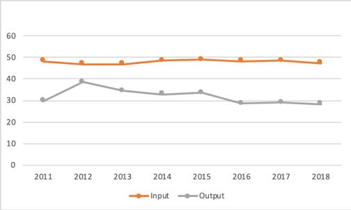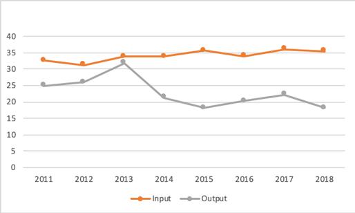 Gráfico 3: Evolución Input y Output – Ecuador – Período 2008 – 2018