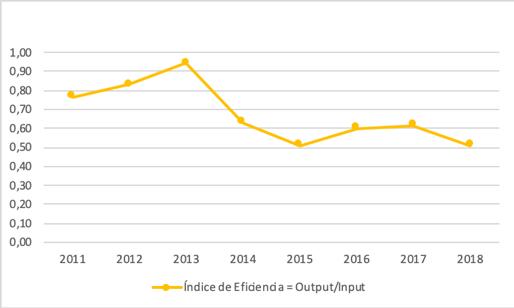 Índice de Eficiencia = Output/Input 0,77 0,83 0,94 0,63 0,51 0,60 0,62 0,51