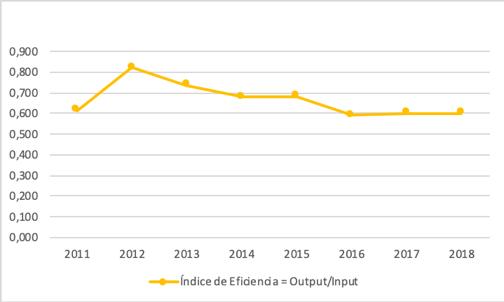 Índice de Eficiencia = Output/Input 0,616 0,823 0,737 0,678 0,683 0,592 0,602 0,602