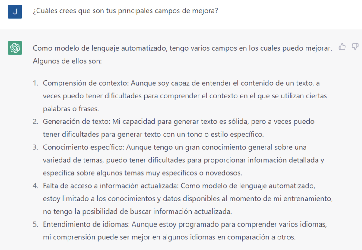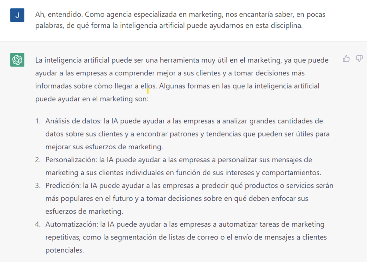 Como veis, ha sido una conversación muy provechosa con ChatGPT. Y ahora que no nos está leyendo, nos vamos a permitir chismorrear un poco sobre él. Es justo incidir en los aspectos que suponen un avance muy relevante para el marketing digital. Sin duda, su capacidad de responder de forma casi inmediata a todo tipo de temas convierte a esta herramienta en un aliado ideal de los profesionales.