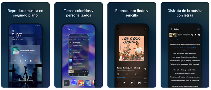No todas las aplicaciones para escuchar música sin internet te dejan administrar tus medios locales. Esto quiere decir que podrás acceder desde la misma aplicación y visualizar los archivos guardados en tu dispositivo. Asimismo, lograrás explorar, filtrar u organizar tus canciones de forma conveniente.Incluir fondos y letras