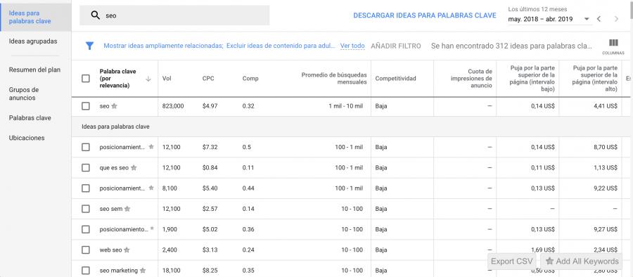 8. Planificador de Google: con este planificador puedes obtener sugerencias de Google sobre una o más palabras con las que deseas posicionarte y también tendrás acceso a los datos de búsqueda mensual.