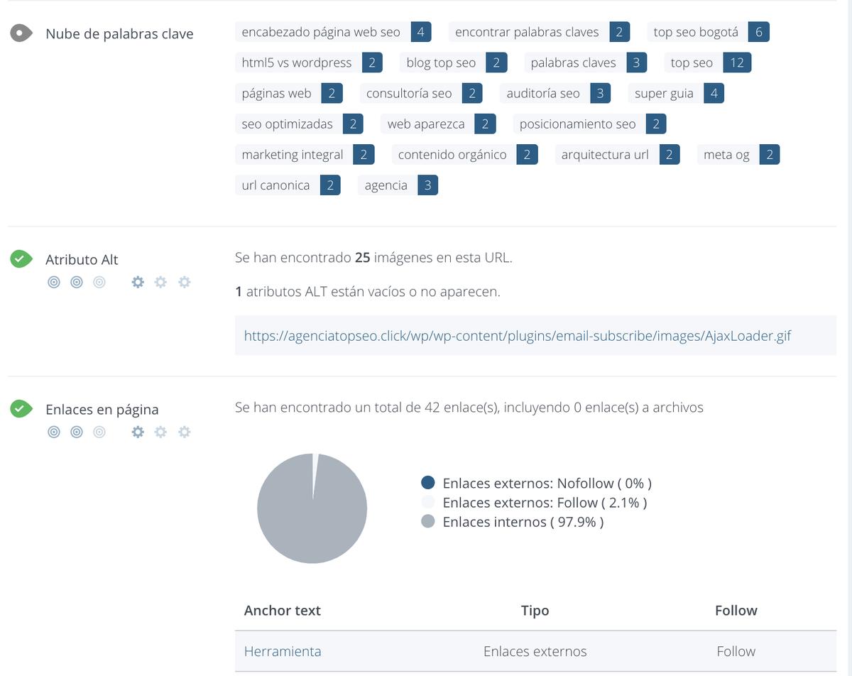 Enlaces en página: no solo muestra los enlaces, también muestra si hay enlaces rotos.