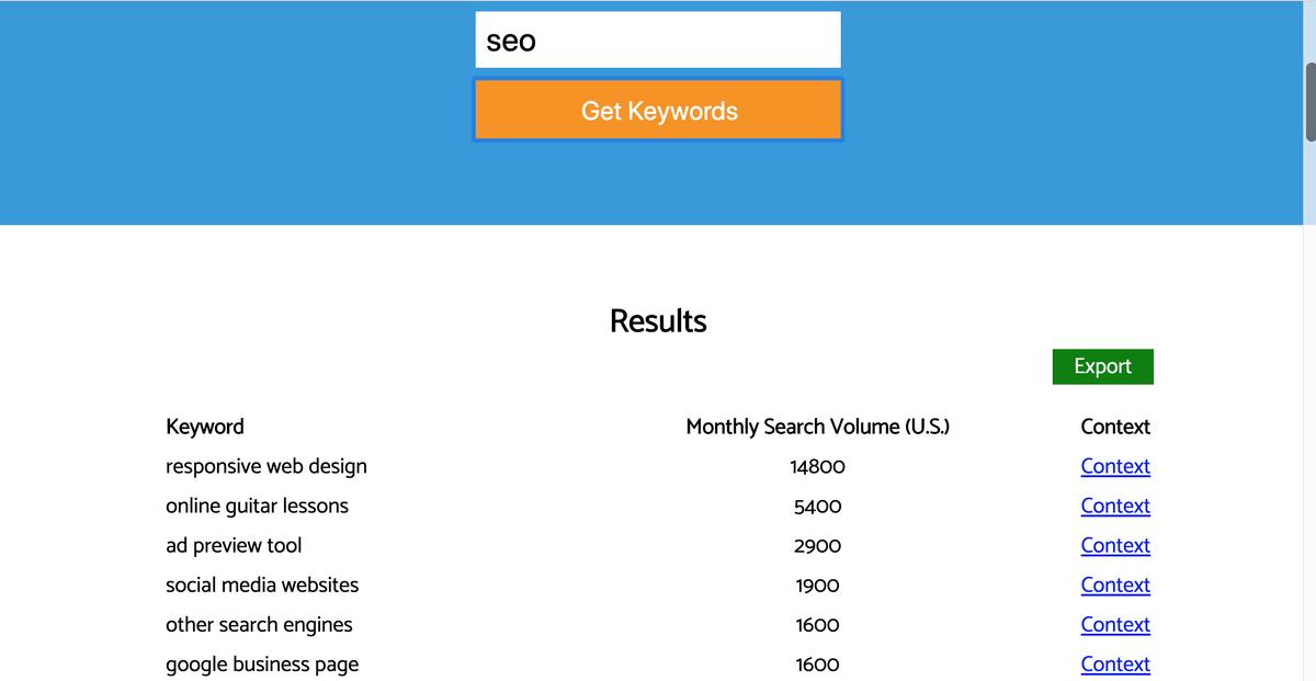 9. keys4Up: con esta puedes encontrar sugerencias de palabras claves con la puntuación según los términos de búsqueda. Funciona en español y solo debes registrarte para desbloquear todas las sugerencias.