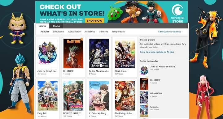 Si lo que queremos es estar bien surtidos de series y películas de animación japonesa y la oferta de Netflix o Prime Video no nos satisface, nada mejor que echar un vistazo a Crunchyroll. Esta plataforma de streaming especializada en anime emite los episodios que se retransmitren en Japón apenas una hora después, y cuenta con títulos icónicos como One Piece, Hunter X Hunter, Naruto Shippuden, Boruto, Attack on Titan, One Punch Man o el nuevo Dr. STONE.La suscripción mensual tiene un coste de 4.99 euros al mes, pero lo mejor de todo es que también hay un plan gratuito con el que podemos ver el contenido de la plataforma -un poco más restringido, eso sí- si estamos dispuestos a tragar algún que otro anuncio por el camino. Perfecto para probar y decidir si estamos dispuestos a dar el salto.