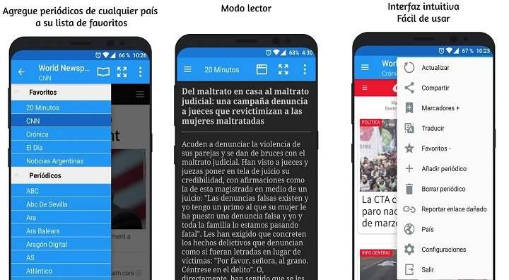 El nombre de la aplicación lo deja bastante claro. Con esta app podemos consultar de forma generalizada la mayoría de periódicos de habla hispana. Incorpora diarios de más de 150 países con más de 6000 fuentes acotadas.