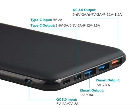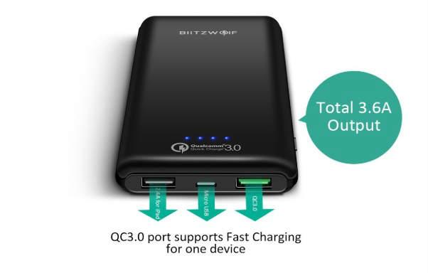Una power bank de 20.000mAh con carga rápida Quick Charge 3.0 de Qualcomm. Esto significa que es un 40% más rápida que un cargador convencional y un 27% más rápido que un cargador QC2.0.