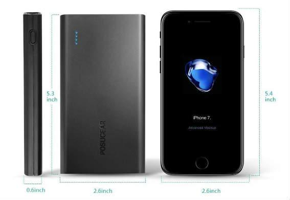 Si buscamos una batería un poco más ligera y que se note menos a la hora de cargar con ella, tenemos la power bank de Posugear con 10.000mAh de capacidad. Al igual que la Pilot X7, tiene 2 salidas USB y una entrada micro USB para carga. Por tanto, podemos poner a cargar 2 dispositivos al mismo tiempo, algo que puede resultar muy oportuno en determinadas situaciones.
