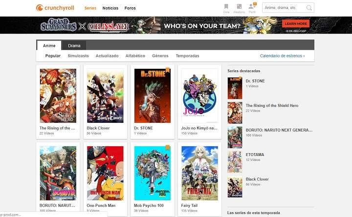 Si somos aficionados al anime en todas sus vertientes tampoco podemos pasar por alto Crunchyroll. Esta plataforma de streaming nos permite ver gran parte de su catálogo con series como One Punch Man, Boruto, Hunter x Hunter o Black Clover sin necesidad de desembolsar un euro.Basta con que nos registremos con una cuenta gratuita en su web para ver el contenido (soportado mediante anuncios). La plataforma todavía tiene algunos puntos que pulir en cuanto a usabilidad, pero en general es una alternativa legal de lo más recomendable para los amantes del género.