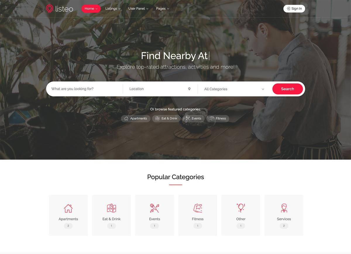 Listeo hace sencillo lo difícil, y quizás esta sea su principal virtud. Nos encontramos ante una plantilla totalmente polivalente, que gusta, que no requiere de conocimientos complejos y que siempre proporciona un gran resultado. Uno de sus puntos fuertes es que tiene un tablero muy gráfico, gracias al cual puedes observar todo lo que se va cociendo en las entrañas de tu página. Otro punto muy a su favor es la posibilidad de establecer un calendario de reservas, por lo que si te dedicas al mundo de los viajes o la hostelería, puede ser una plantilla a tener en cuenta.