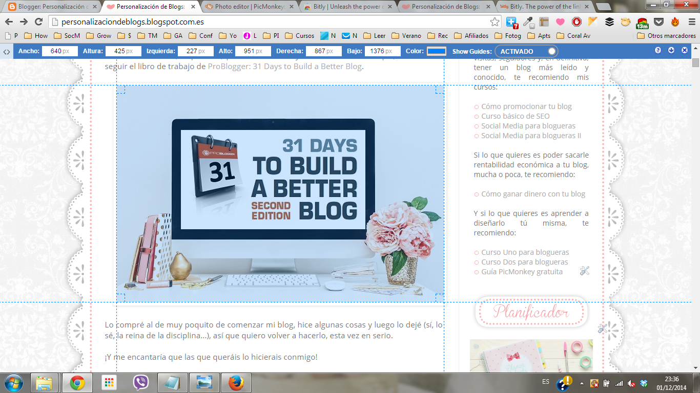 ¿Os podéis creer que a día de hoy no me se el rosa de mi blog? Me sabía el del diseño pasado (fdb8b6) pero el de este diseño aún no me lo he aprendido. ¿Qué hago entonces si estoy haciendo un cartelito y le tengo que poner algo rosa? (como en la captura que he hecho para Bitly, que le he añadido una flecha rosa).