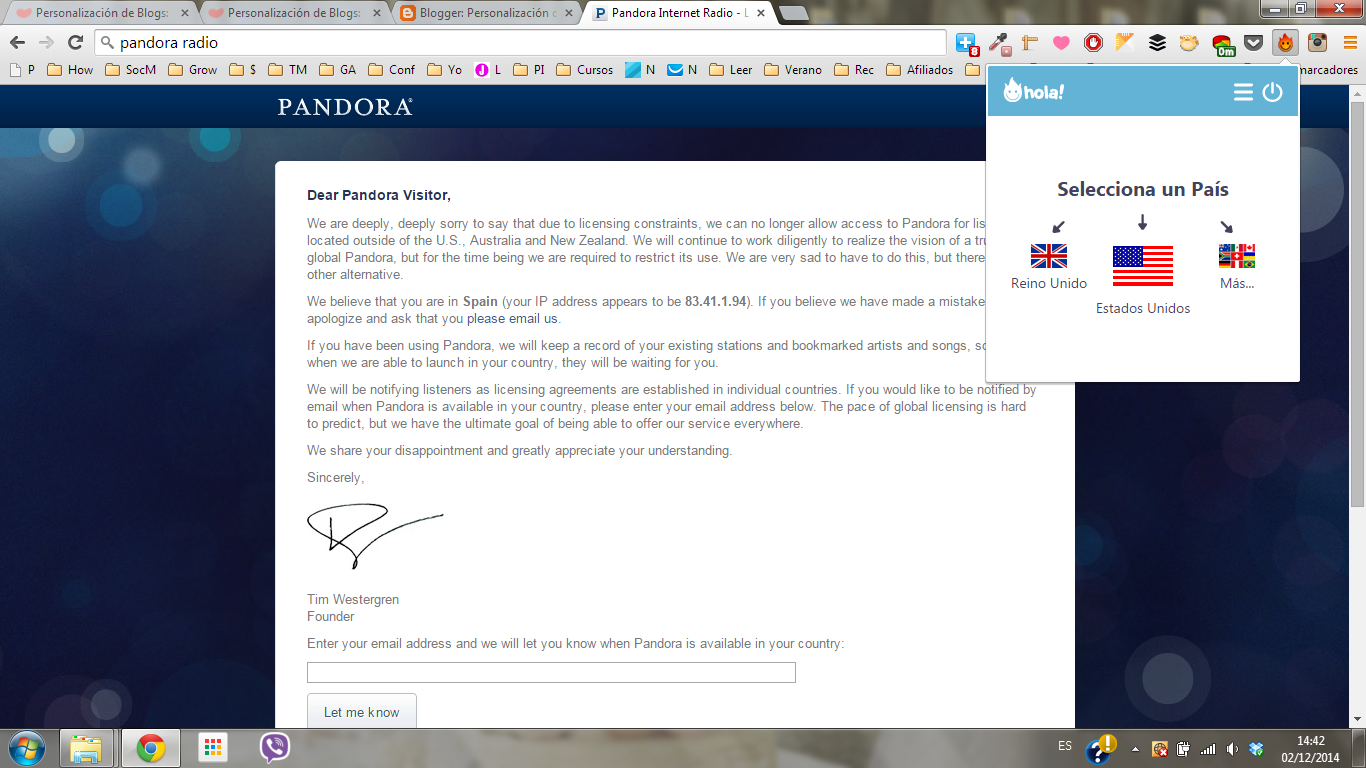 En cuanto lo hagáis os dejará usar la página o ver el vídeo que queríais :) (estupendo para Pandora Raido, tele online de otros países, etc.)