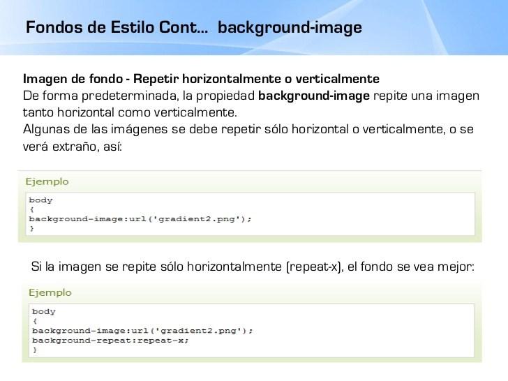 El uso habitual de la propiedad background es el de mostrar una imagen de fondo en un elemento y simultáneamente establecer las propiedades de esa imagen (si se repite o no, su posición y si es fija o no). Las dos reglas CSS siguientes son equivalentes, pero la segunda es mucho más compacta: