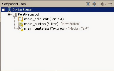 Al lado derecho se encuentra el Component Tree o arbol de componentes, en esta ventana se representa en forma jerárquica la relación de nuestros views.
