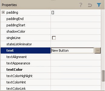 Una vez definido esto, vamos a agregar estas cadenas al archivo strings.xml. Para ello vamos al panel de propiedades y buscamos el atributo text del botón y hint del edittext. Presionaremos el botón "...".