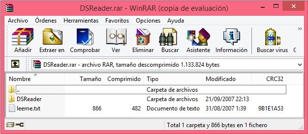 Luego hacéis click en la carpeta correspondiente, en mi caso se llama DSReader. luego en la DSReader.nds ¿Preparados para leer?