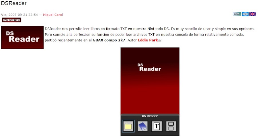 Bien, si te interesa sólo tienes que seguir leyendo. Hace muchos años me compré una Nintendo DS, de hecho de las primeritas que salieron al mercado. En seguida se me ocurrió que si podía jugar y leer los diálogos de los juegos en la pantalla quizás podría leer libros electrónicos, así que, me lancé a preguntar a mis queridos amigos freaks que me respondieron como si les hubiera preguntado cómo se enciende un teléfono móvil.