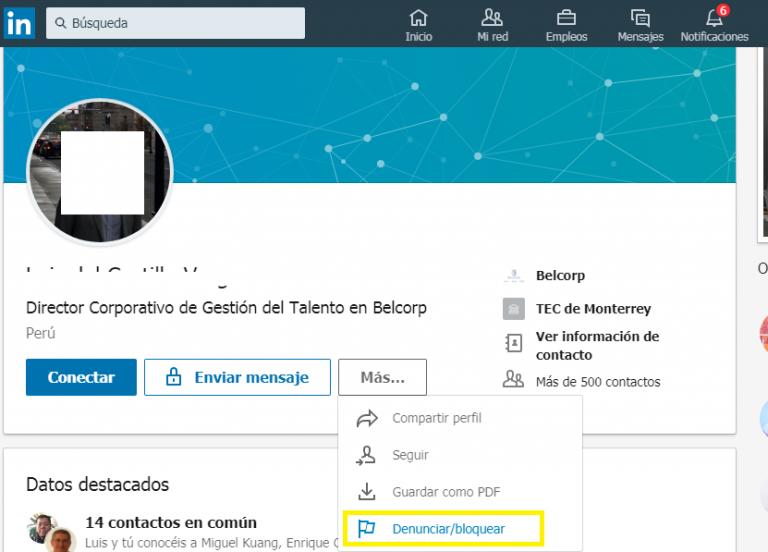 Pasos para bloquear a un contacto/miembro de LinkedIn