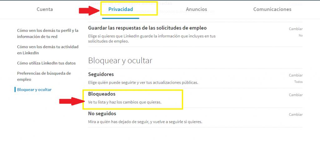 Si quieres ir a tu lista de contactos bloqueado en LinkedIn, sigue los siguientes pasos: