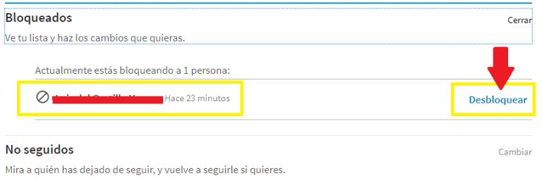 Te aparecerá una lista con todos tus usuarios bloqueados