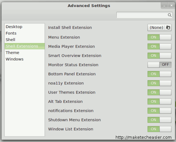 La mayoría de las características de escritorio en Linux Mint 12 son sólo extensiones de Gnome Shell y puede activarlas o desactivarlas fácilmente, dependiendo de sus preferencias. Si desea una experiencia nativa de Gnome Shell, simplemente desactive todas las extensiones con la herramienta Gnome Tweak. La herramienta Gnome Tweak es una herramienta imprescindible para los usuarios de Gnome 3 y me alegro de que venga preinstalada en Linux Mint.