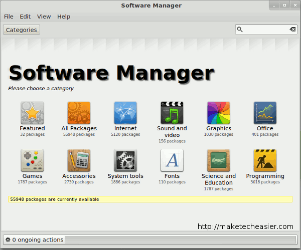 El Software Manager es similar al Centro de Software de Ubuntu, excepto que está más organizado y las categorías están bien organizadas. Nunca me ha gustado el Ubuntu Software Center porque es pesado, lento y muestra demasiada información en la pantalla. Por otro lado, el Software Manager en Linux Mint se carga rápidamente y es menos exigente a la vista.